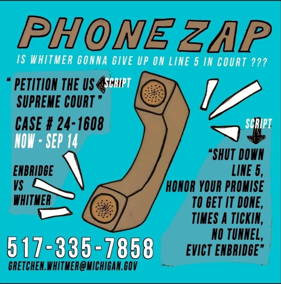 Governor Whitmer has until September 14th to take the legal fight against Enbridge Line 5 to the Supreme Court. Call Gov Whitmer today and ask her to stand up to protect the water and file a petition to the Supreme Court. Call (517)335-7858. SCRIPT: “Governor Whitmer, file a Petition before September 14 to take the […]