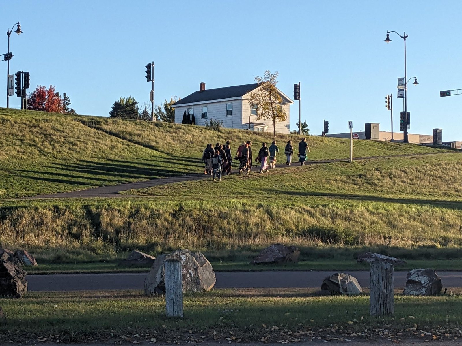 A brief report-back from the Nibi Walk held on October 11 along the proposed path of the Line 5 reroute in Wisconsin. For Nibi Walk explanation and protocols, please see https://www.nibiwalk.org/about/: “Led by Anishinaabe Grandmothers, Water Walks respect the truth that water is a life giver, and because women also give life they are the keepers of the water.” Community members walked in ceremony from the Mashkiiziibii (Bad River) in Mellen to Lake Superior in Ashland. Thank you to Adrienne for sharing their message and images from the walk, along with a few additional images we received.
