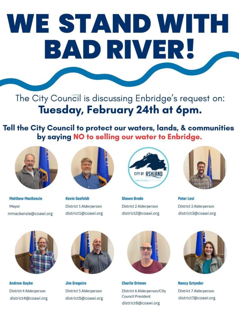 The City of Ashland is considering selling water to Enbridge for the construction of the Line 5 reroute project through the Bad River water shed.